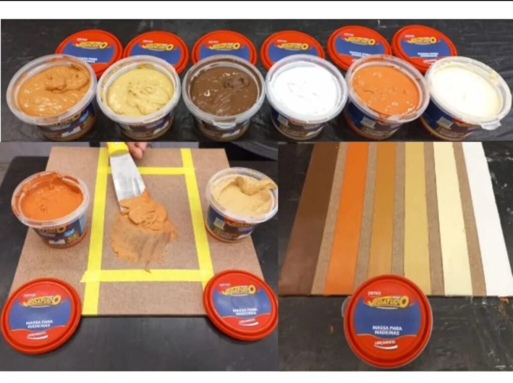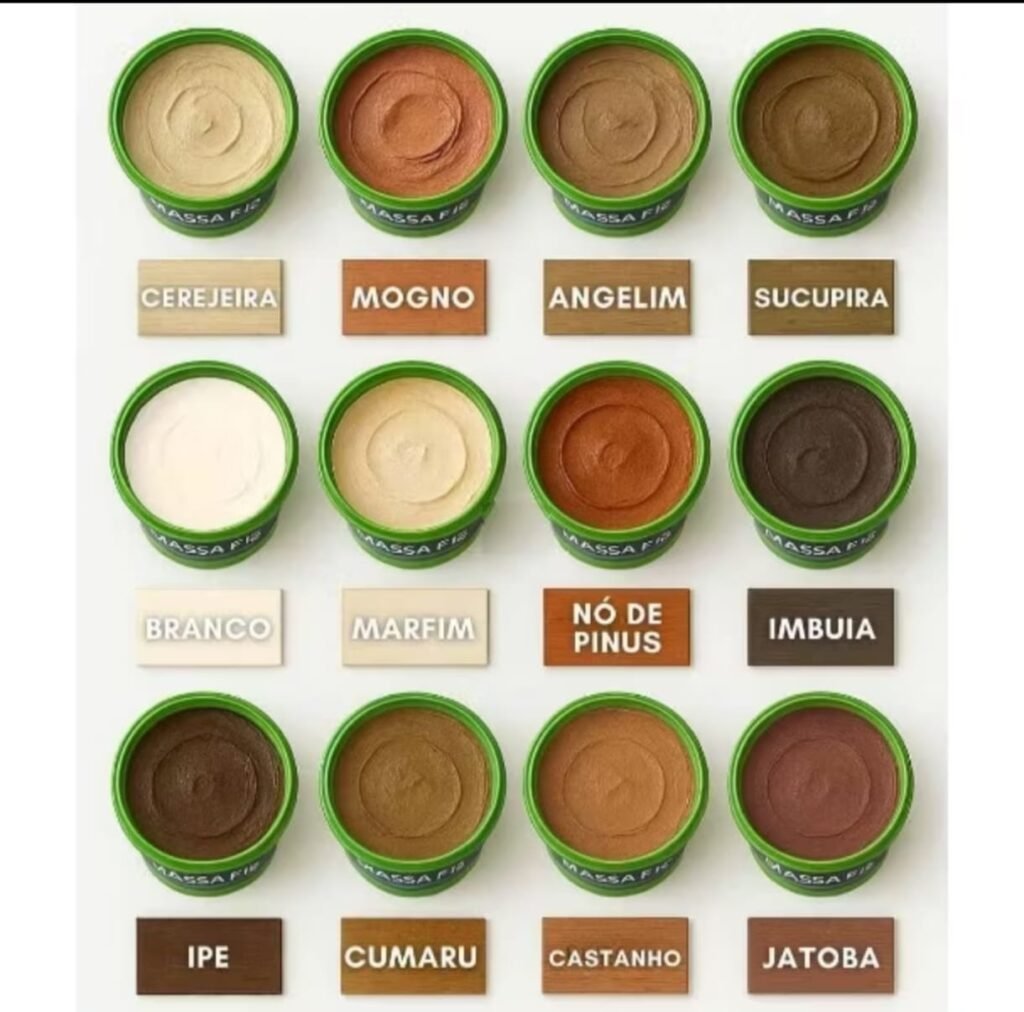 MASSA PARA MADEIRA, É UM PRODUTO IDEAL PARA PREENCHER FISSURAS E IMPERFEIÇOES, DISPONÍVEL EM VARIAS CORES: